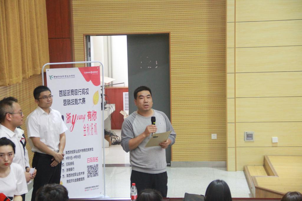 2017年9月14日下午,经济与金融管理系携手浙商银行咸阳分行在学术报告厅举办了首届浙商银行高校营销技能大赛宣讲会。浙商银行咸阳分行副行长刘波及相关工作人员、经济与金融管理系全体学生参加了此次宣讲会。
