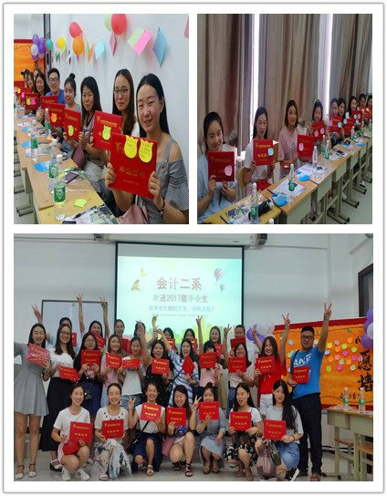 6月底,我系制作了毕业证领取流程宣传展板,并通过QQ、微信等多媒体平台,多角度多层次的宣传毕业证领取流程,使毕业生清晰了解办理离校手续和领取毕业证流程,提醒毕业生文明有序离校。同时,为了使毕业生感受到母校的温暖与关怀,避免高温下办理手续的排队等待,会计二系为毕业生精心布置了三间休息室,提供免费的矿泉水,播放毕业典礼视频和毕业相关电影、音乐,舒缓毕业生等待的烦躁心理。系团总支还组织召开了2017届毕业生“感悟青春,感恩母校,心系陕财,梦想起航”最后一次主题班会,会计二系专职副书记乔晶策及毕业班辅导员老师为毕业生送上了祝福与寄语,学弟学妹们通过文艺节目也向毕业生们表达了自己的祝愿。最后,毕业生们在五彩的便利贴上抒写心愿,表达着对母校的感恩与不舍,诉说着同窗三年惜别之情,也寄托着自己对未来的憧憬与向往。