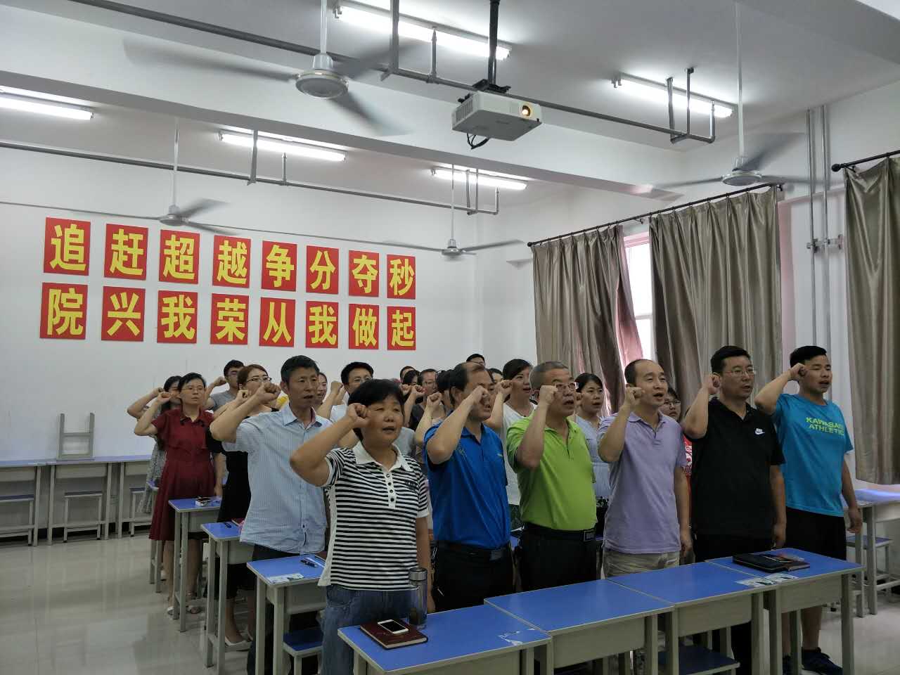 会上,按照文件的具体要求,评选推荐了先进基层党组织、优秀共产党员和优秀党务工作者。全体党员面对党旗重温了入党誓词,带着边读边想边对照的精神集体诵读党章的部分内容,全体教工党员现场按月足额缴纳了党费。用一位老党员的话说,整体诵读党章,重温入党誓词,天气炎热出出汗,振奋人心抖精神。仿佛又回到了如火的青春岁月。