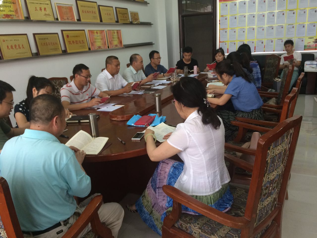 根据安排,在会计一系党总支书记马西牛的领诵下,全体党员集体朗诵党章(第一章第3条、第9条和第七章第37条、第38条),在琅琅的诵读声中,全体党员对党的性质、宗旨、指导思想、奋斗目标以及党员的权利和义务,有了更深刻的理解,同时对于如何做一名合格党员有了更加清醒的认识,进一步增强了党员们的底气、正气和锐气。大家心潮澎湃,不约而同地向会议室的党旗行注目礼。