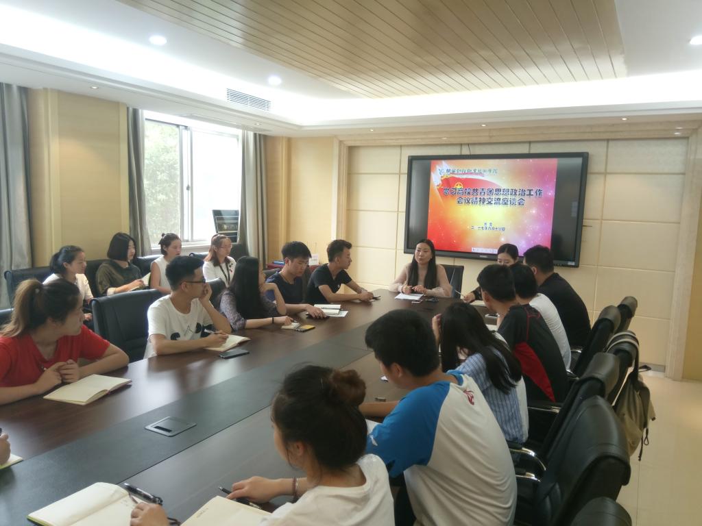 6月14日上午9:00,团委组织师生代表在实训楼二楼会议室开展学习高校共青团思想政治工作会议精神交流座谈会,参加此次会议的师生代表共计20余人,会议由团委书记窦曼娟主持。
