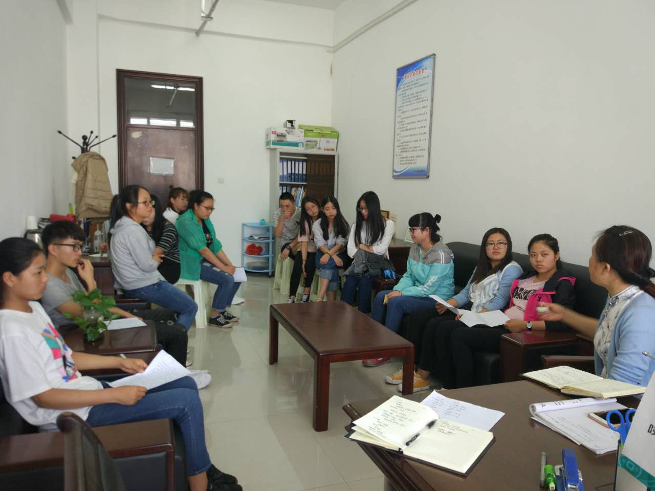 根据学院期中教学检查安排,5月11日下午4时30分,经济与金融管理系中期教学检查学生座谈会在综合楼603办公室召开。经济与金融管理系副主任景海萍、教学秘书王福荣以及全系8个教学班的共14名学生代表参加了会议。会议由景海萍主持。