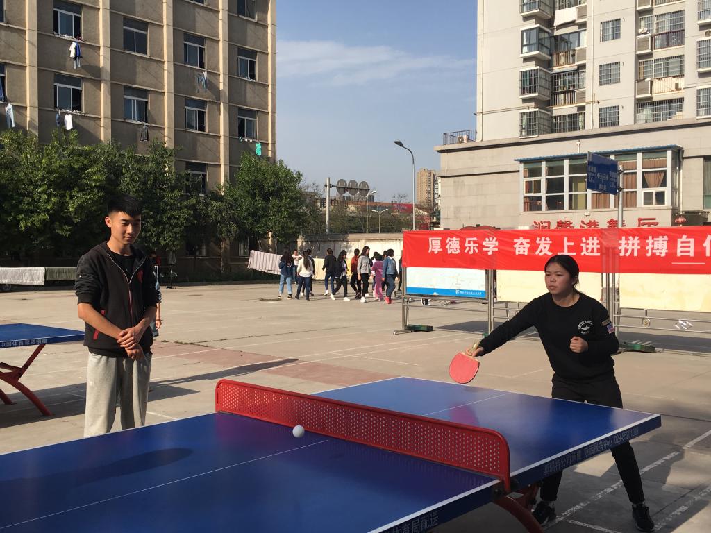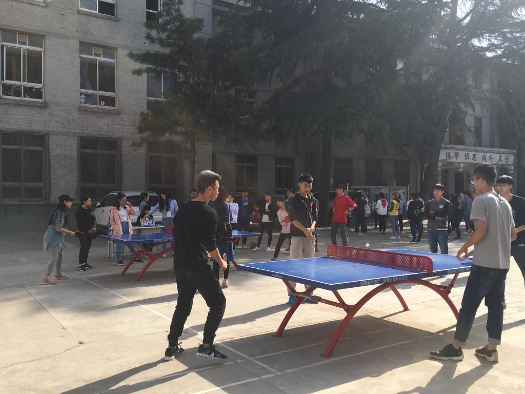 2017年4月19日下午四点,我院南校区举办了以“厚德乐学,奋发上进,拼搏自信”为主题的乒乓球友谊赛。此次比赛由我院第八届学生分会主办,比赛设有男子单打和女子单打两个项目。南校区50个班级,近100人参加比赛。比赛规则采用三局两胜,每局11分,每球得分制。