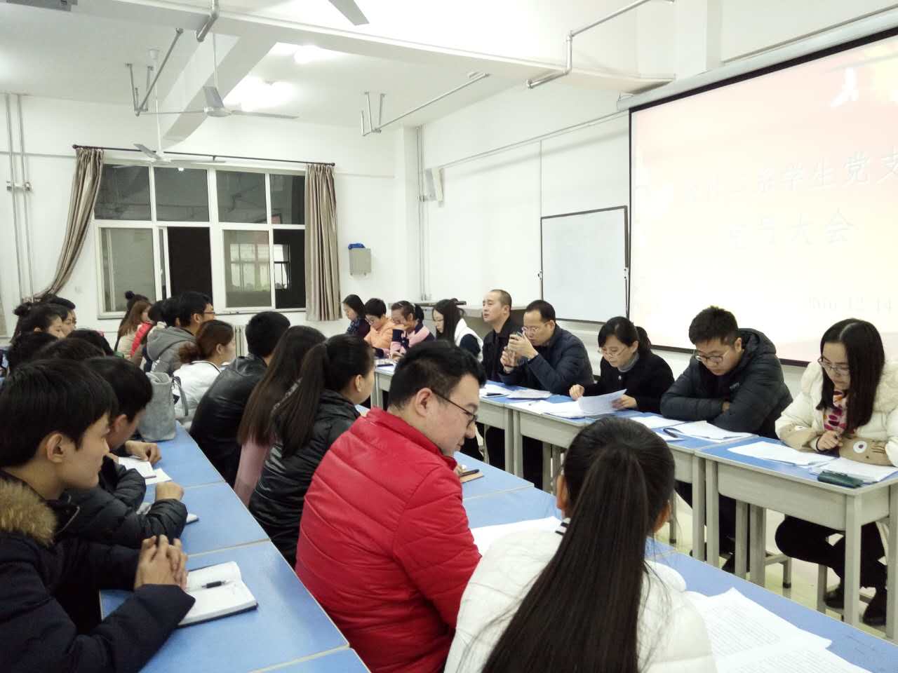 2016年12月14日晚7时,会计二系学生党支部在综合楼402教室召开了2016年下半年学生党员发展大会。参加本次会议的有会计二系专职副书记、学生党支部书记乔晶策以及全体辅导员。会议由学生支部宣传委员师丽珍主持。