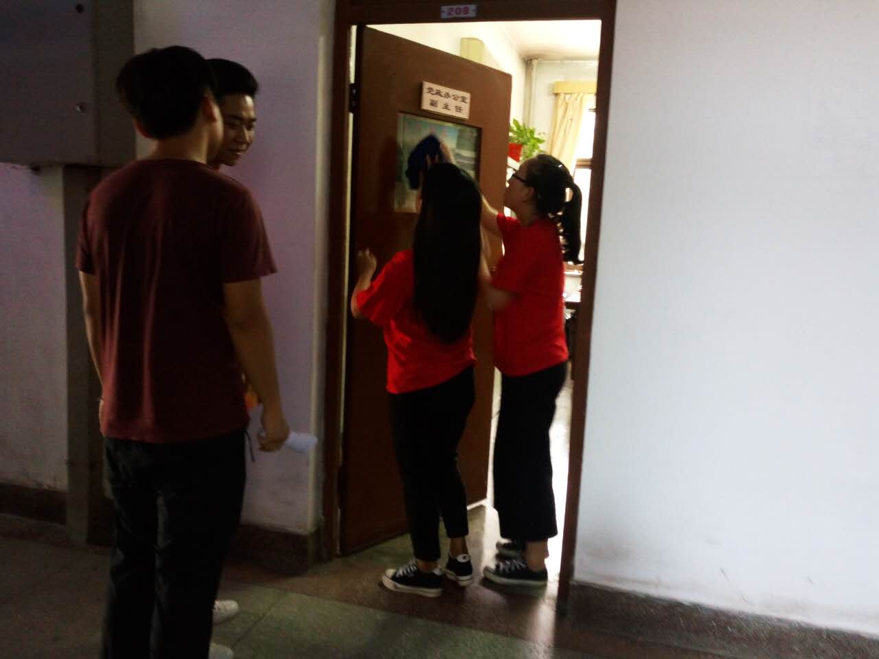 在第32个教师节来临之际,会计一系党员先锋队衷心感恩老师们的辛勤培育和悉心守望,9月8日下午,开展了一天的的办公楼、综合楼公共区域和老师办公室卫生打扫志愿服务。