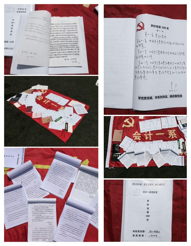 另一方面,会计一系学生支部于3月24日起在全体学生党员中启动了“手抄党章100天”活动,部分教师党员、积极分子和班团干部知悉后也积极响应参与其中。