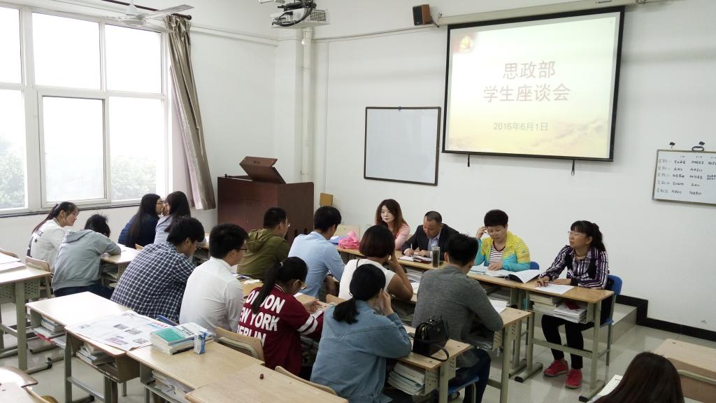 为更好地贯彻习近平总书记关于办好高校思想政治理论课的重要批示精神,落实《陕西省普通高校思想政治理论课建设体系创新计划实施方案》(陕高教宣〔2016〕6号)的通知要求,扎实推进我校思想政治理论课教育教学工作,充分发挥思政课教学在大学生思想政治教育中的主渠道、主阵地作用。 6月 1日下午 ,思政部在教学楼401教室召开了学生代表座谈会。会议由思政部副主任陈志宏主持,四个系的学生代表与思政部全体教师参加了本次会议。
