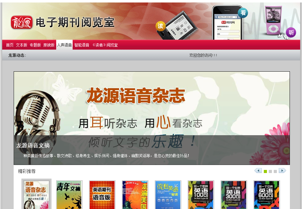 龙源期刊最大的特色就是多版立体阅读,分别是:整刊版,提供刊物的目录和全文,以及往期检索,读者可以更直接的选择自己喜爱的期刊阅读。专题版, 完全突破每本杂志的局限,按照不同的类别划分不同的专题,使读者聚焦自己感兴趣的话题。 原文原貌版, 原汁原味,再现纸板期刊原貌,无需下载安装浏览器,电子版翻阅更便捷。 语音版,打破期刊文字的束缚,让我们的期刊“动”起来,男声女声两个版本的语音阅读,变读刊为“听刊”。