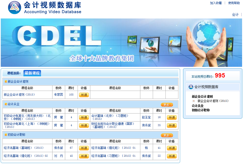 在学院领导的支持下,在学院国资处的配合下,适合我们学院教学的数字资源——《正保会计视频数据库》,已于2016年5月16日正式开通,本次开通的课程资源有:会计从业、初级会计职称、新会计准则,共三大模块。