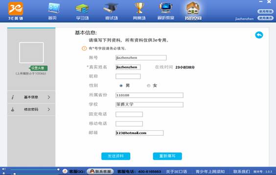 2、账号注册完成后,下载3E专属客户端,点击进入并登录后,请首先在我的空间完善个人资料,填写真实信息,以便获奖后能够第一时间确认您的身份并与您取得联络。如图: