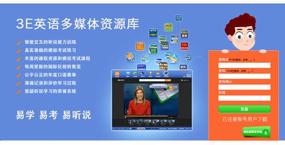 1、在校园网IP内直接登录3E英语多媒体资源库官网http://www.3etalk.com.cn点击进入后直接注册比赛账号,如下图: