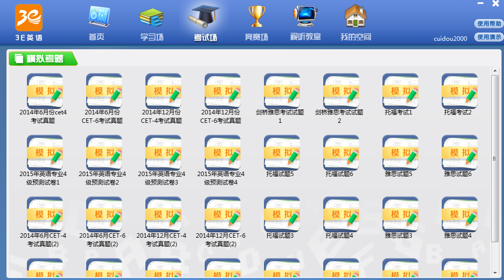 “3E英语”是由北京策腾教育科技有限公司凭借多年来在互联网技术和在线教育领域的丰富经验,通过与众多的英语学科领域专家、教授共同研讨、反复论证而自主研发的新一代智能语音多媒体学习资源库。3E英语即“易学、易考、易听说!”,“3E英语”从提高大学生的英语实际运用能力出发,采用国际领先的智能语音技术,以准确度、流利度、完整度等三个维度,通过单词练习、课文朗读、角色扮演等五种学习模式,提供包括基础会话、新闻英语、考试通关、职场商务、原版小说、视听教室等诸多门类上万小时的课程资源,全面帮助学生提高英语听说能力和考试成绩。