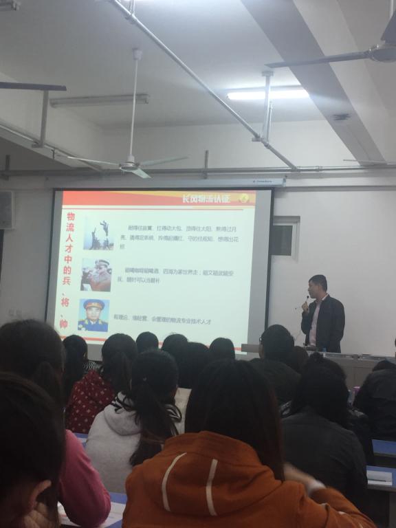 3月22日下午四时,以“现代物流企业岗位用人需求与长风物流认证”为主题的宣讲会在我院综合楼六楼合班教室举行,我院14级物流管理专业和电子商务专业学生共计100余人参加了此次宣讲活动。参加会议的还有络杰斯特科技发展有限公司长风物流认证项目经理康加山、络杰斯特科技发展有限公司西安分公司部分员工及经金系全体教师。