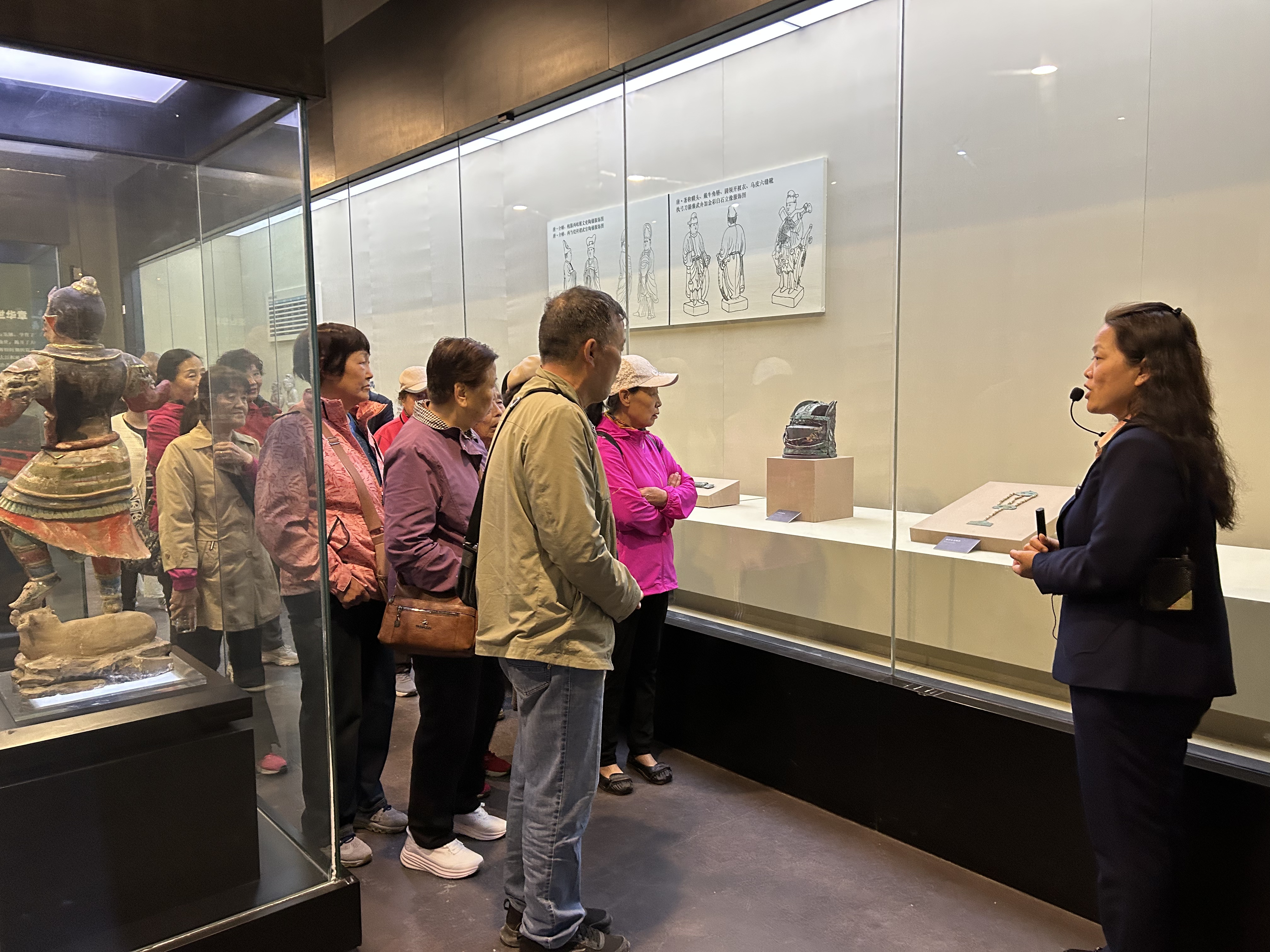 上午10时,退休教职工来到昭陵博物馆进行参观学习。在讲解员的引导下,退休教职工深入参观了馆内珍藏的彩绘釉陶文武官俑、唐代墓葬壁画以及昭陵碑林历代碑刻等重要文物。透过这些跨越千年的文物遗存,大家深切领略了唐代历史文化的深厚底蕴与独特魅力,更为其中展现的中华民族卓越智慧与开放包容的气度所触动,进一步增强了文化自信。
