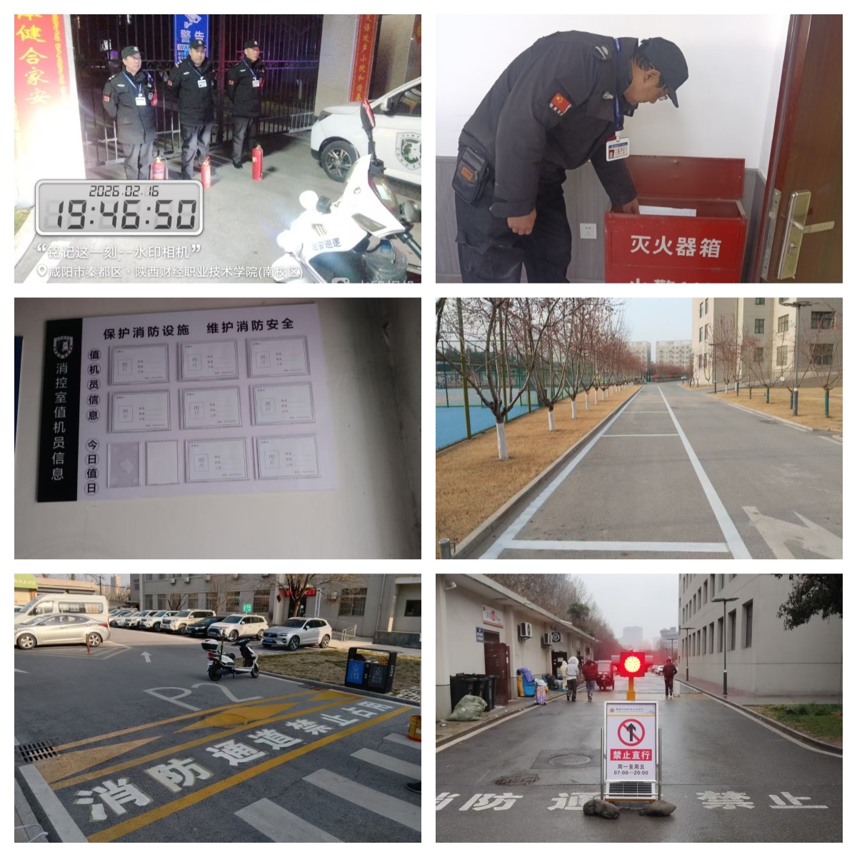 消防安全是冬春校园安全工作的重中之重,保卫处严查消防设施缺失损坏、疏散通道堵塞、违规用火用电用气、电线老化破损等问题,清点灭火器、消防栓等设施数量和有效期,测试火灾自动报警系统、应急照明和疏散指示标志功能,确保消防设施完好有效。同时,严格落实陕西省和咸阳市有关烟花爆竹禁燃禁放要求,防范校园区域烟花爆竹火灾事故发生。消防巡查中重点关注用电、用火、用气安全,特别是施工项目严查违规用电、违规作业等行为,筑牢校园消防安全“防火墙”。