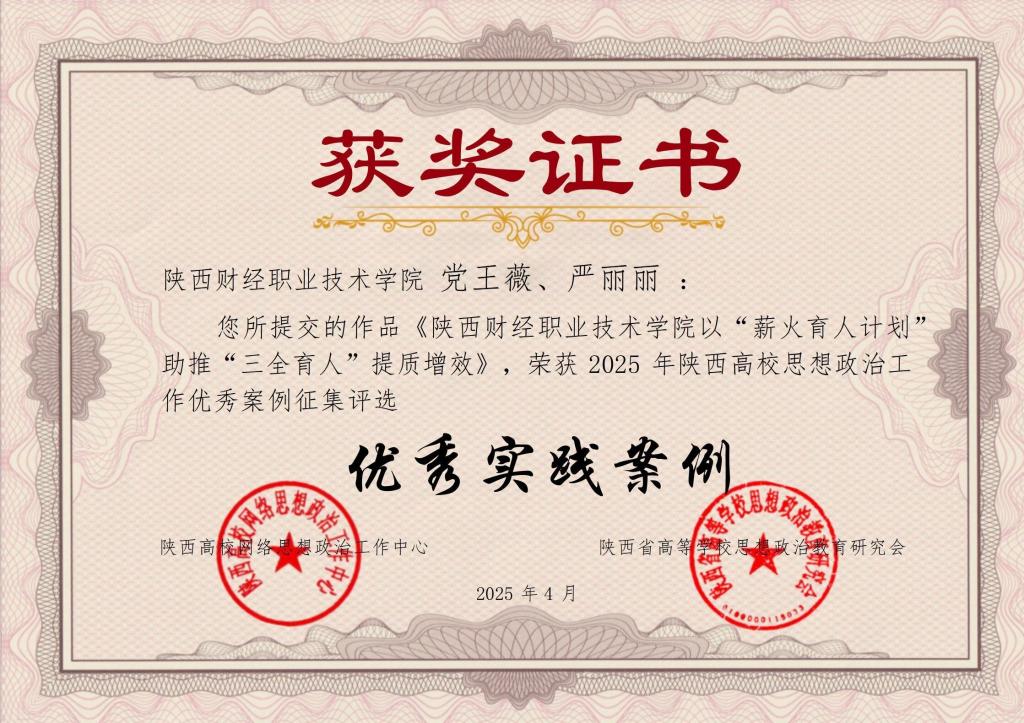 大浪淘沙始见金,沧海济帆终接云。在近期揭晓的由陕西高校网络思想政治工作中心与陕西省高等学校思想政治教育研究会联合举办的2025年度陕西高校思想政治工作优秀案例评选中,我校申报的《陕西财经职业技术学院以“薪火育人计划”助推“三全育人”提质增效》案例,从全省41所高校64件申报材料中脱颖而出,成功入选“优秀实践案例”,荣登24篇省级优秀案例榜单,这是对我校思政工作创新实践的充分肯定。