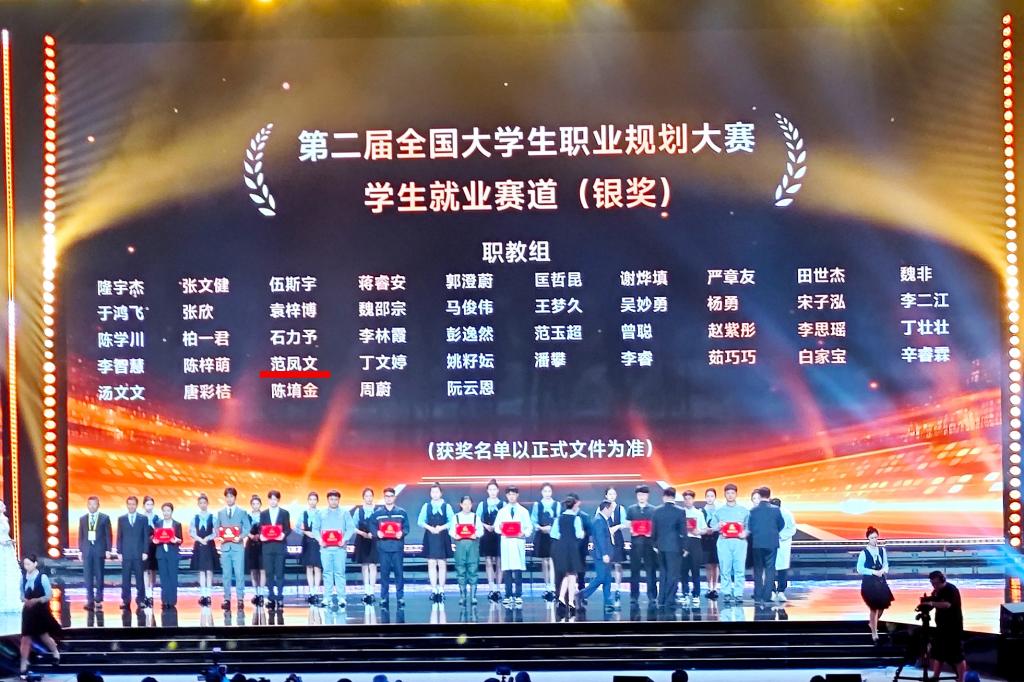 4月16日至19日,第二届全国大学生职业规划大总决赛在湖南长沙举行。经过激烈的角逐,我校数字媒体技术专业学生张佳瑶夺得成长赛道职教组金奖、学前教育专业学生范凤文获得就业赛道职教组银奖。继我校在去年首届大赛中斩获1金1铜后,今年再创佳绩,荣获1金1银好成绩,续写辉煌!