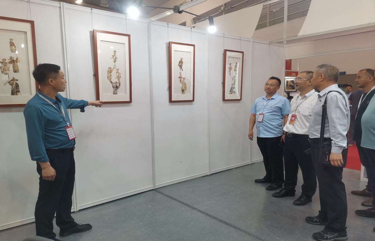展会期间,陕西经济联合会党委书记、副会长王奋利一行到我校展位参观品鉴,对我校展出的麦秆画、蛋雕、泥塑等成果作品高度赞扬,充分肯定了我校在陕西工艺美术事业发展过程中做出的突出贡献。