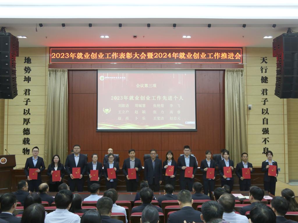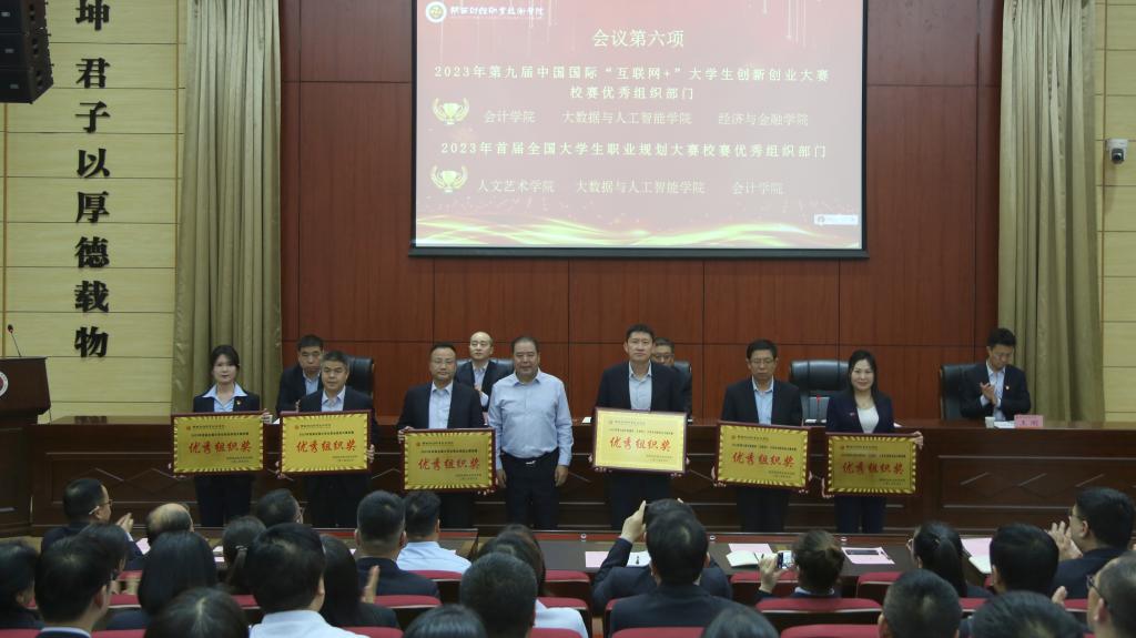 会议表彰了2023年毕业生就业创业工作先进集体、优秀集体、就业创业工作先进个人,2023年第九届中国国际“互联网+”创新创业大赛校赛优秀组织部门,首届全国大学生职业规划大赛校赛优秀组织部门。