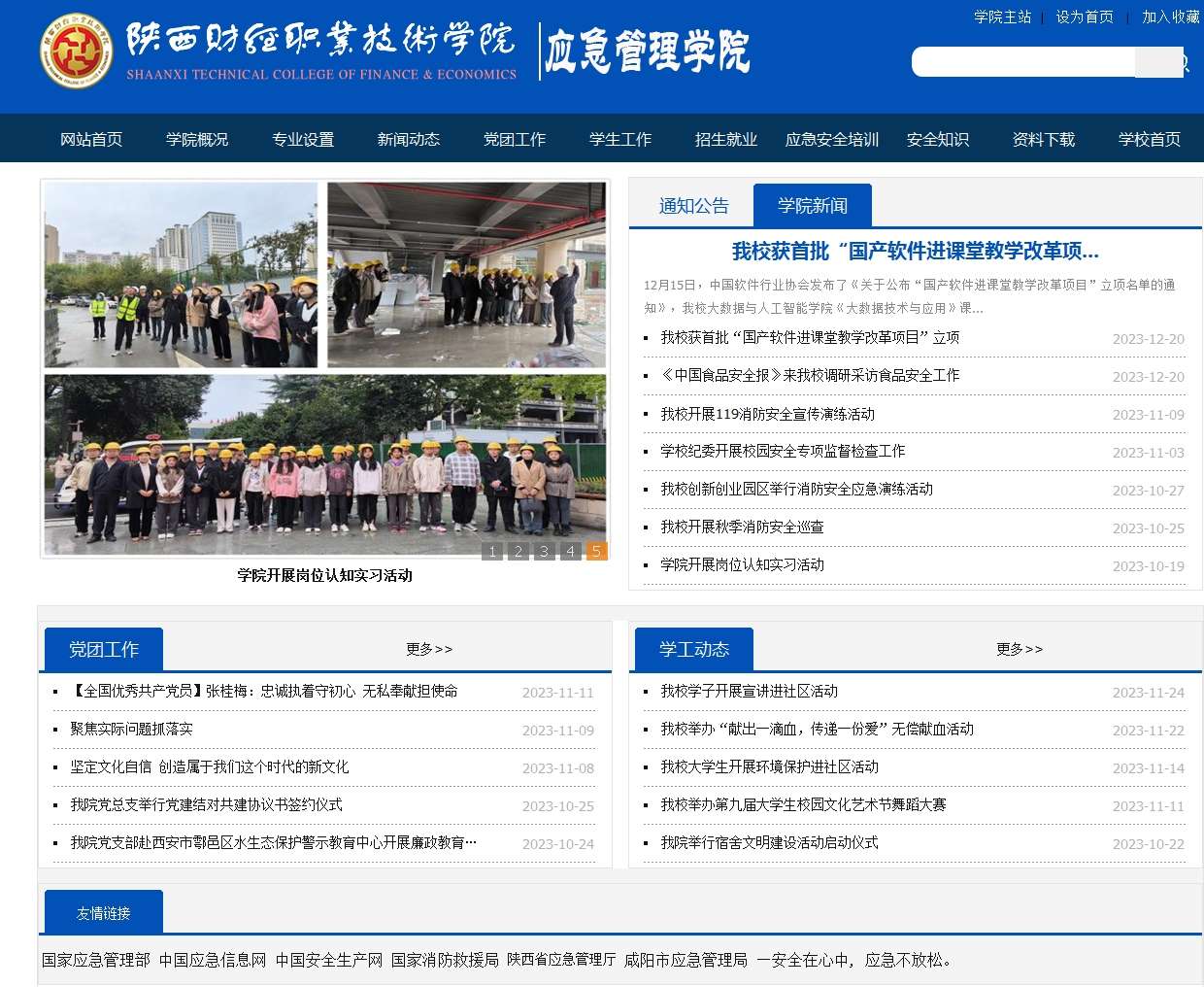 2023年10月7日我校发文成立陕西财经职业技术学院应急管理学院,随后学校组建应急管理学院项目试点申报团队,团队由教务处牵头、继续教育与职业技能培训学院(乡村振兴学院)协同、其他部门参与的方式组建,校长程书强担任组长,亲自指导申报工作。邀请教育部学校规划建设发展中心专家组成员、西安科技大学李文峰教授一行来校举行项目建设座谈会,深度解读项目建设需求。申报团队在管理学博士、应用经济学博士后、博士研究生导师程书强教授的带领下认真研读应急安全智慧学习工场项目方案及项目手册,结合我校实际情况,以建筑安全领域、信息安全领域、金融安全领域、安全与应急培训领域为重点方向策划项目定位、建设方案,多次改稿、修订,完成申报书初稿,并配套开发应急管理学院网站。聘请校外、行业专家多次考察、论证,提出修改意见,多轮次打磨,最终成稿上报。期间,教务处、继续教育与职业技能培训学院(乡村振兴学院)全力协调场地、设备,切实做好保障;质量管理中心、人事处等部门准确提供所需数据;各二级学院安排专人,提炼支撑材料;各方通力协作,持续推进申报工作。