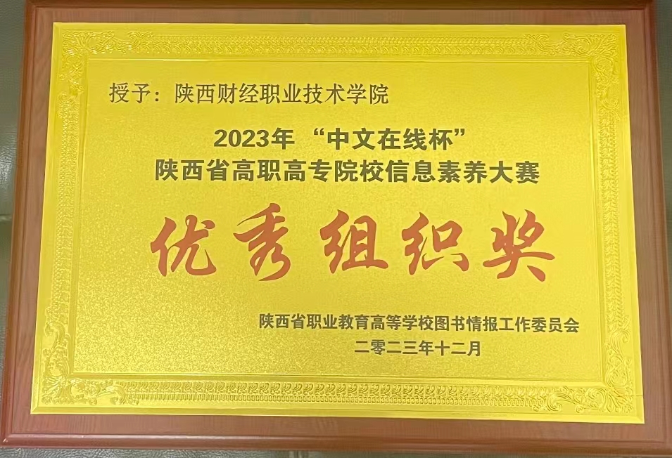 12月9日,由陕西省职业教育高等学校图书情报工作委员会主办的2023年陕西省高职高专院校图书馆年会暨陕西省高职院校信息素养大赛表彰会在安康职业技术学院召开,我校从22家参赛单位中脱颖而出,荣获优秀组织奖。