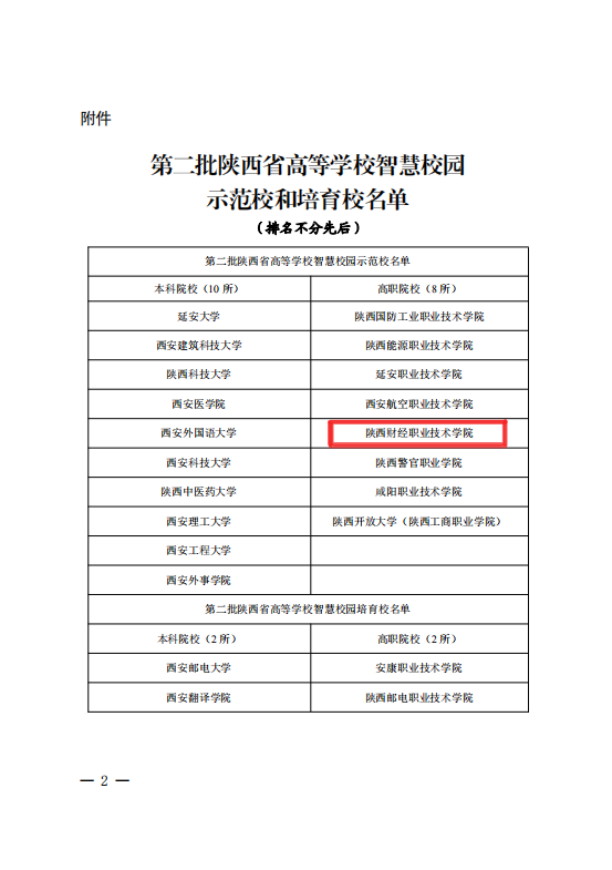 根据《陕西省智慧教育示范区及智慧校园示范校管理办法(试行)》精神和《陕西省教育厅办公室关于开展第二批高等学校“智慧校园示范校”遴选工作的通知》安排,省教育厅组织开展了第二批高等学校智慧校园示范校申报工作。经学校申报、现场考察、评估汇报、省上答辩、专家评审、厅务会审议等程序的激烈角逐,此次全省共有10所本科院校和8所高职院校被认定为智慧校园示范校。