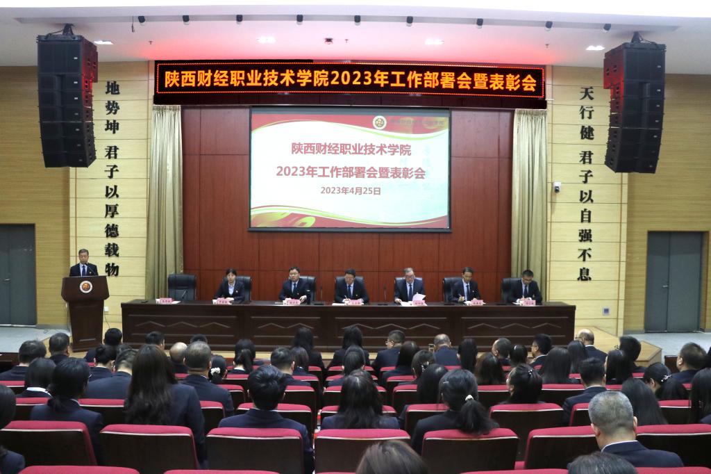 2023年4月25日下午,我校在学术报告厅召开2023年工作部署会暨表彰会。学校全体教职工参加会议。党委副书记朱华斌主持会议。