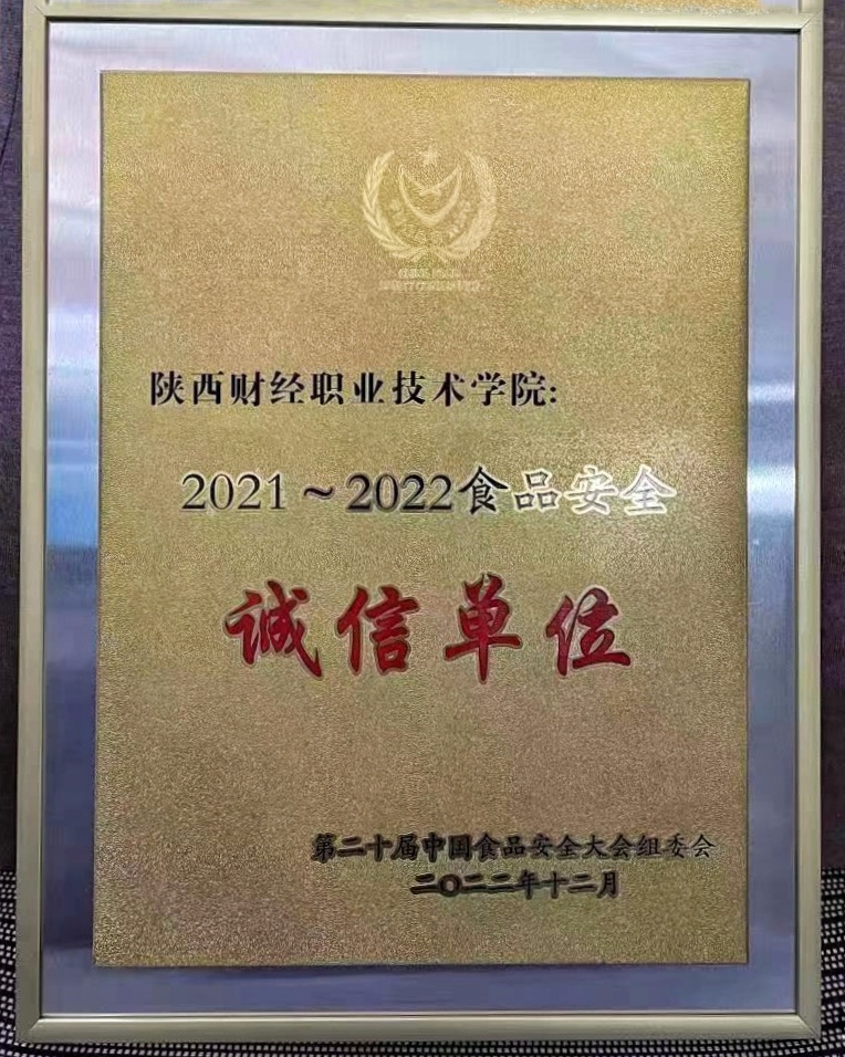 我校荣获“2021-2022食品安全诚信单位”荣誉称号