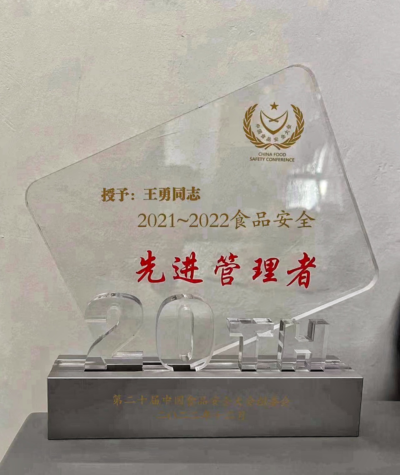 总务处王勇同志获“2021-2022食品安全先进管理者”荣誉称号