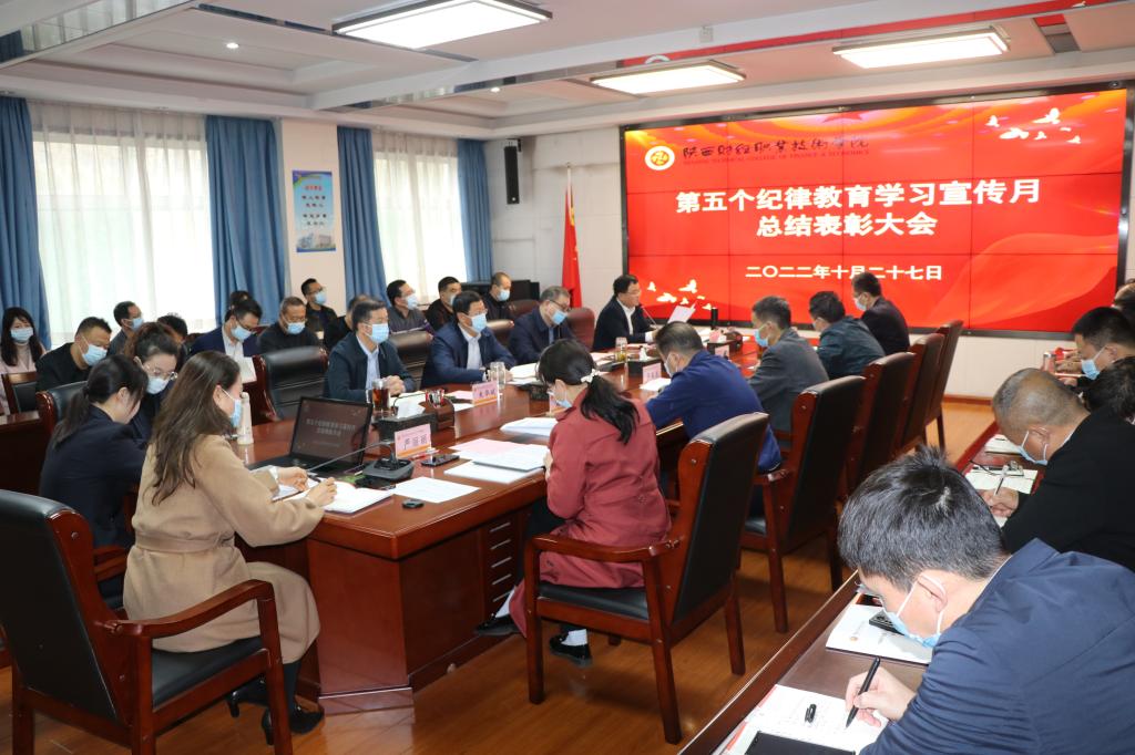 10月27日上午,我校在办公楼四楼会议室举办了第五个纪律教育学习宣传月总结表彰大会。校领导班子成员出席会议,全体处级以上干部共计40余人参加会议。党委副书记、纪委书记殷兴光主持会议。