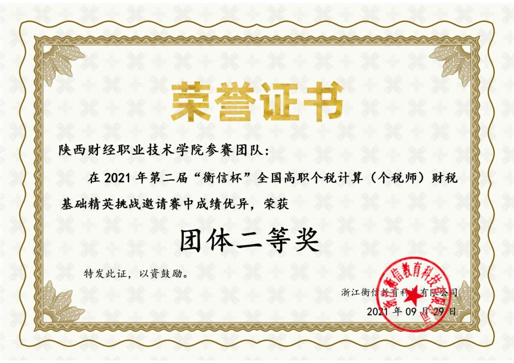 我校参赛团队在2021年第二届“衡信杯”全国高职个税计算(个税师)财税基础精英挑战邀请赛中获得团体二等奖