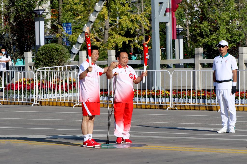 2021年9月10日上午,十四运会和残特奥会火炬在商洛传递,我校人文艺术学院院长贺兴文作为第八棒火炬手,高举熊熊燃烧的全运会火炬健步奔跑,并不时挥手向沿途的群众致意。