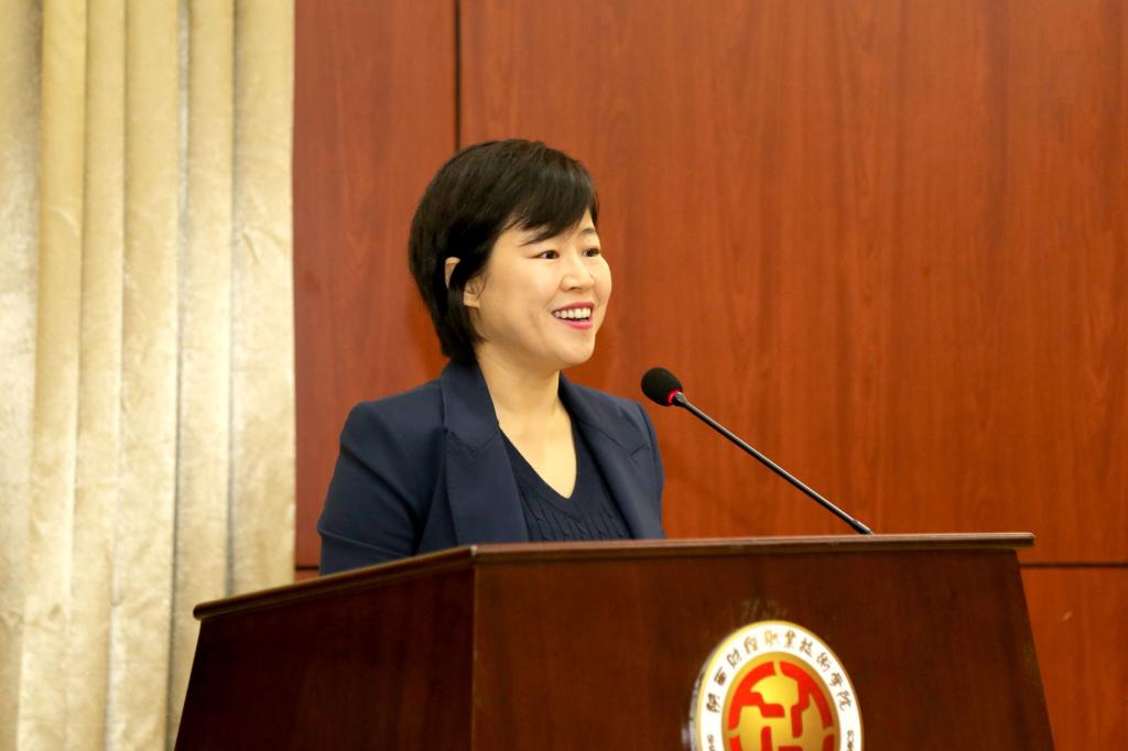 外语教学与研究出版社高职分社社长李淑静女士也做了发言,李淑静介绍了外研社在外语教育和教材开发方面的动态,对我院为本次大赛的顺利举办做出的周到安排和精心准备表示感谢,表示外研社将在教材开发和教师培训上继续努力为陕西省高校提供帮助。随后,我院人文艺术学院执行院长崔斗宣布比赛正式开始。
