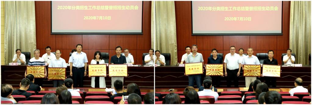 7月10日上午,我院召开2020年分类招生总结表彰会暨普招招生动员会,因疫情防控需要,会议设主会场和分会场。学院领导班子成员、受表彰人员及处科级干部在学术报告厅主会场参会,其他教职工在综合楼5个分会场参会,分会场以视频直播方式进行。副院长于新和主持会议。