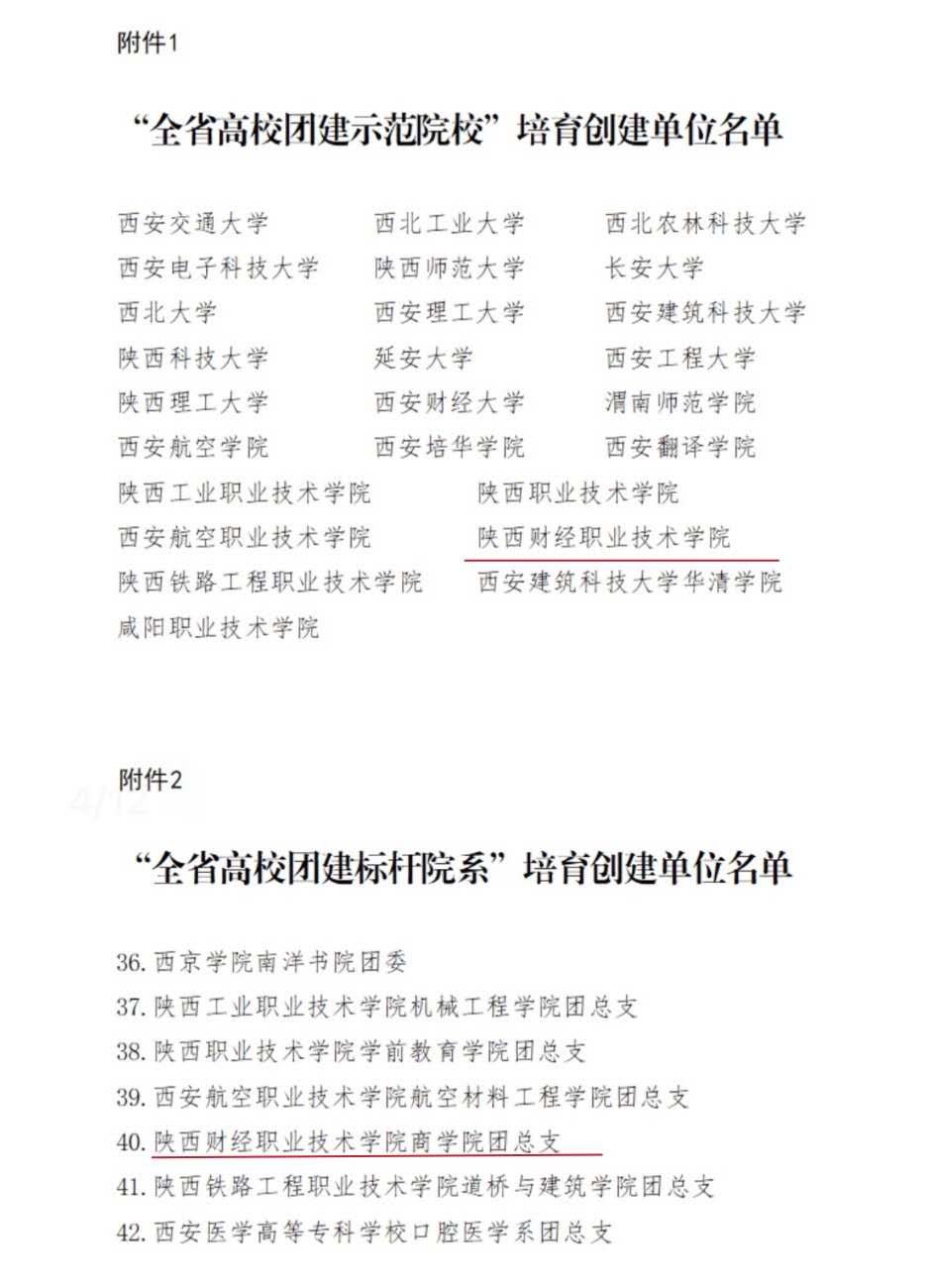 此次共青团陕西省委、中共陕西省委教育工委共遴选出25个高校团委、45个院系团组织为首批全省高校团建示范院校和标杆院系,我院位列其中。