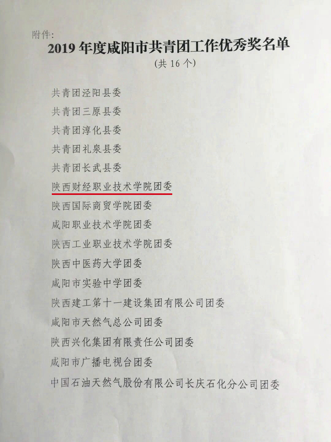 3月25日,共青团咸阳市委印发《关于授予2019年度咸阳市共青团工作优秀奖的决定》(团咸发〔2020〕13号),学院团委荣获“2019年度咸阳市共青团工作优秀奖”。在咸十余所高校共五所获此殊荣,为学院树立了良好的社会形象。