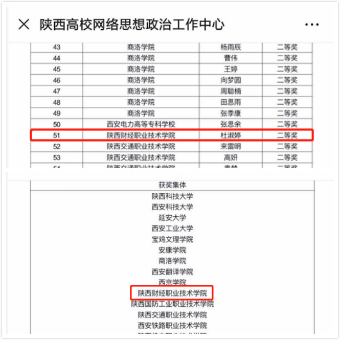 2月25日,陕西高校网络思想政治工作中心、陕西省高校易班发展中心发布《陕西高校大学生新型冠状病毒肺炎疫情防控网络知识竞赛获奖名单的公告》,公布了知识竞赛个人获奖名单和优秀组织奖名单,我院南校区2019级会计9班杜淑婷同学获得二等奖,我院荣获优秀组织奖。
