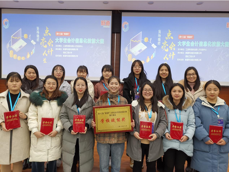 12月7日,第十三届“新道杯”全国大学生会计信息化技能大赛全国总决赛(陕宁区总决赛)在西安工程大学举行。来自陕西、宁夏35所院校的51支代表队展开激烈角逐。大赛分为高职组和本科组,两个组别试题相同。由曾贵荣、张宽、祝红艳老师指导的我院三支参赛代表队以绝对优势分别名列高职组管理会计和信息化两个赛项的前三名,包揽了高职组所设的四个团体一等奖(管理会计赛项一队团体一等奖、管理会计赛项二队团体一等奖、管理会计赛项三队团体一等奖、信息化赛项一队团体一等奖);参赛选手任静、王怡、宋秀丽、余青青、张乐、何洋子以总成绩前六名包揽了信息化赛项高职组个人一等奖;学院被授予“学校赋能奖”奖牌。