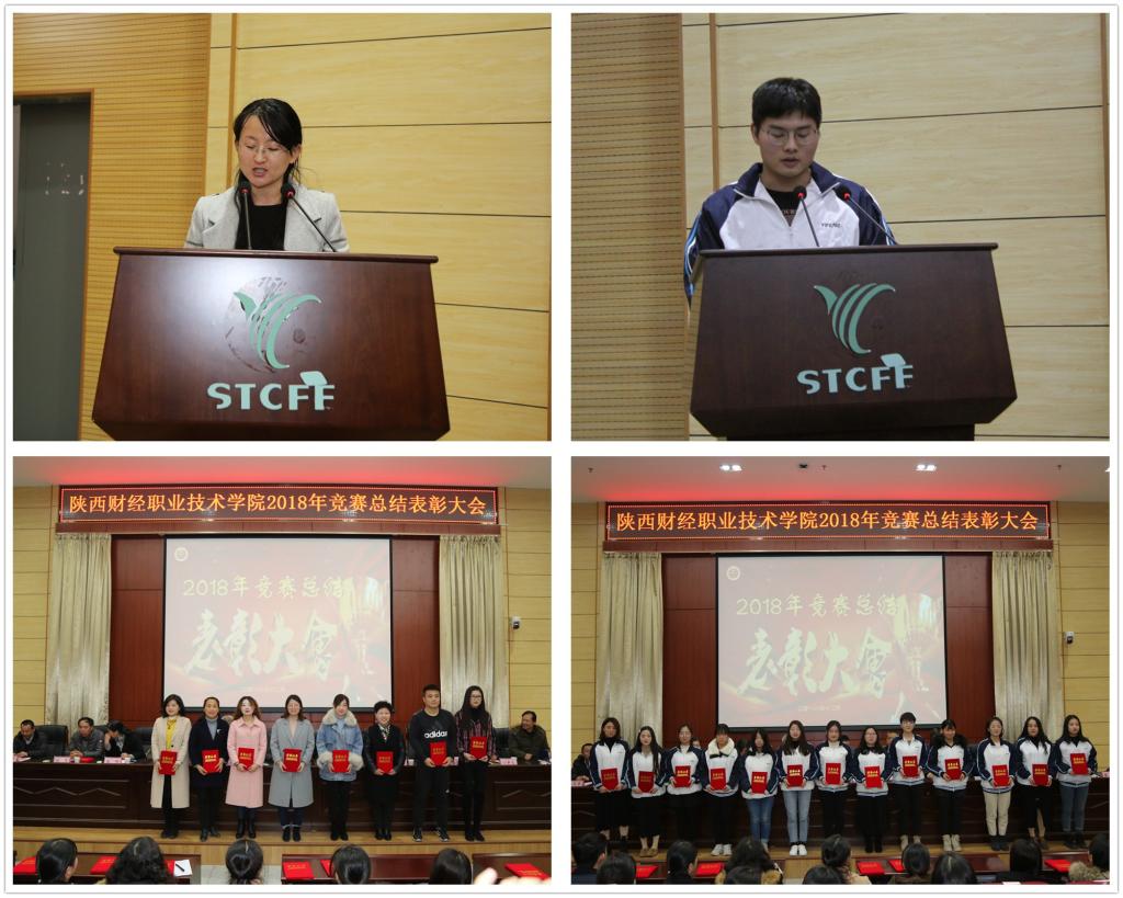 随后,马西牛宣读了《关于表彰陕西财经职业技术学院2018年竞赛获奖集体和个人的决定》,李启明宣读了《关于表彰陕西财经职业技术学院2018年国赛获奖单项奖的决定》《关于表彰陕西财经职业技术学院2018年青年教师教学竞赛获奖个人的决定》,邓迪夫宣读了《关于表彰陕西财经职业技术学院2018年省级技能大赛获奖集体和个人的决定》,董媛宣读了《关于表彰陕西财经职业技术学院2018年各行业大赛获奖集体和个人的决定》,景海萍宣读了《关于表彰陕西财经职业技术学院2018年第四届“互联网+”大学生创新创业大赛获奖个人的决定》《关于表彰陕西财经职业技术学院2018年思政课教师大练兵获奖个人的决定》。各二级学院院长、各教学部主任、科研处处长及教学质量管理中心主任分别为获奖选手和教师进行颁奖。