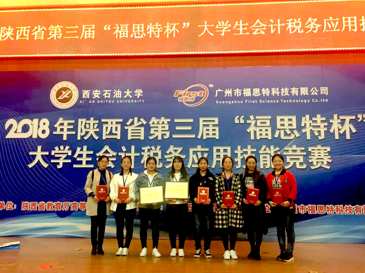 陕西省第三届“福思特杯”大学生会计税务应用技能竞赛于2018年10月27日,在西安石油大学鄠邑校区隆重举行,我校由林琳、朱红霞、薛媛指导的会计学院代表队和黄敏、张宽、秦珊珊指导的管理学院代表队均获得特等奖。