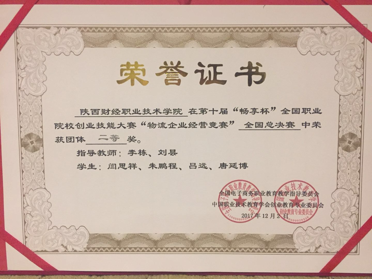 12月2日,2017年全国职业院校技能大赛“物流企业经营技能大赛”全国总决赛在武汉软件工程职业学院隆重举行,来自全国97个代表队参加了此次比赛。我院经济与金融管理系李栋、刘昙老师指导的闫思祥、吕远、朱鹏程、唐延博4位同学喜获团体二等奖。
