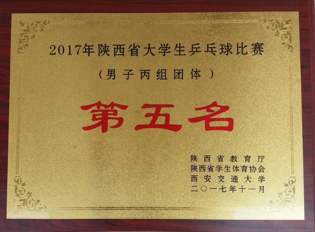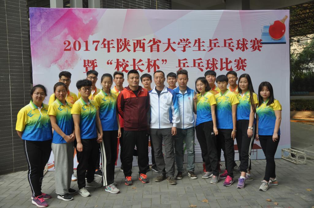 由省教育厅主办、省学生体育协会、西安交通大学承办的“2017年陕西省大学生乒乓球赛暨‘校长杯’比赛”学生组比赛于11月7—10日在西安交通大学体育中心举行,我院代表队选派出的16名选手本着拼搏进取、坚持到底、永不放弃的体育精神,团结协作,经过四天的激烈角逐,获得了专科类院校男、女团体第五名的成绩,同时税颖获得女子单打第三名,冯新芳获得女子单打第五名,沙金英/艾希、武宵晴/潘丹丹并列获得女子双打第五名,朱可欣获得男子单打第五名,魏声老师获得优秀教练员称号。