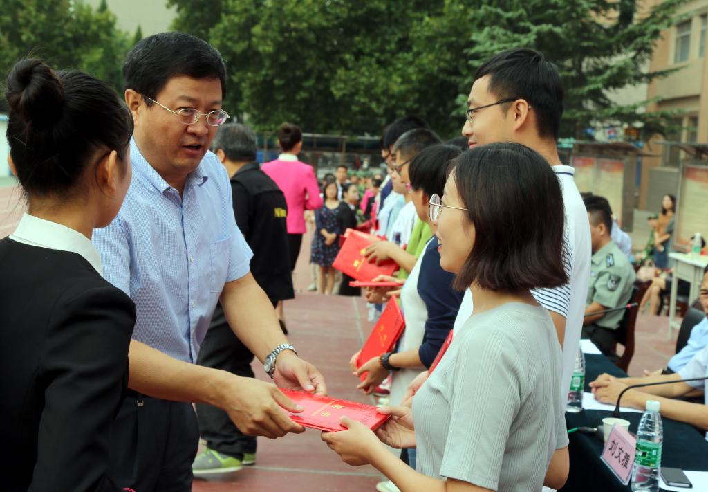 会上,刘晓玉宣读了《关于聘任2017-2018学年辅导员的决定》;范忠宣读了《关于表彰2016-2017学年优秀辅导员的决定》;刘文雅宣读了《关于表彰第四届辅导员职业能力大赛先进个人的决定》;于新和宣读了《关于表彰2017级入学成绩优秀新生的决定》;谢云峰宣读了《关于表彰2017级新生军训先进集体和先进个人的决定》。与会领导为受表彰先进集体和个人颁发了奖状和荣誉证书。张志华为新聘辅导员颁发了聘书。