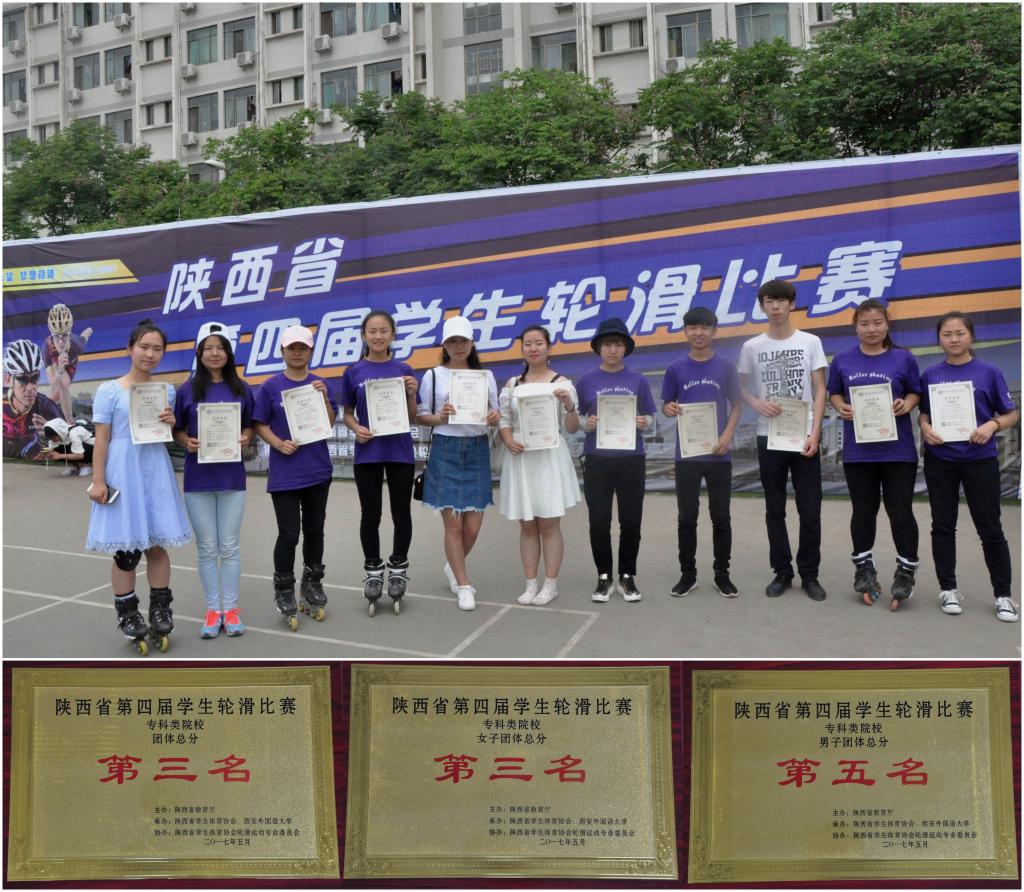 由省教育厅主办,省学生体育协会、西安外国语大学承办,省学生体育协会轮滑运动专业委员会协办的陕西省第四届大学生轮滑比赛于5月13——15日在西安外国语大学长安校区举行。我院代表队选派出的17名选手团结协作、顽强拼搏,经过三天的激烈角逐,获得了专科类院校男女团体总分第三名、女子团体总分第三名、男子团体总分第五名的优异成绩。另外韦博星、樊昊青获得优秀运动员称号,李健兵老师获得优秀教练员称号。