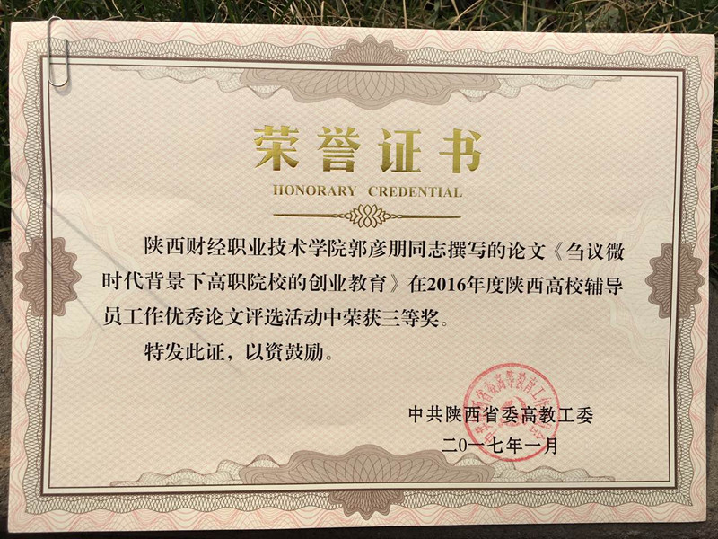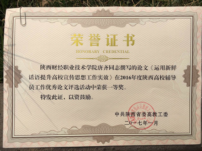 近日,中共陕西省委高教工委通报表彰了2016年度陕西高校辅导员工作优秀论文获奖者,我院会计一系辅导员唐齐撰写的论文《运用新鲜话语提升高校宣传思想工作实效》荣获一等奖、南校区辅导员郭彦朋撰写的论文《刍议微时代背景下高职院校的创业教育》荣获三等奖。