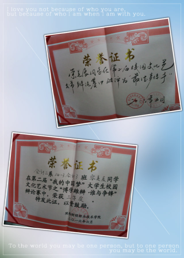 我系2014级会计三班团支部积极参与学院及系部组织的各项活动,长期坚持开展团日活动,结合学院育人理念及本班实际,开展“诚信在我身边”,“珍惜时间、把握青春”,“孝敬父母、学会感恩”,“告别陋习、走向文明”等多项主题班会,进一步提高了学生知恩、感恩、报恩的社会责任感。通过开展学习讨论会及辩论会,提高了同学们的学习兴趣提升了学习效率。2014级会计专业423名学生,年级综合排名前十,该班独占五席;有86.9%的同学分别了取得会计从业资格证、英语AB级证、计算机等级证;有4名同学顺利考过初级会计;该班熊裕宁、容美展、张莎、董明明、席丹同学大一期间在学院组织的会计知识竞赛中,荣获团体一等奖以及个人一、三等奖;容美展同学在2014-2015学年会计专业成绩排名全年级第一,获得国家奖学金,并在大一期间代表学院参加了陕西省职业技术教育学会组织的会计知识竞赛,获得了团体一等奖和个人二等奖;在我院第二届大学生校园文化艺术节之“博学雄辩,谁与争锋”辩论赛中,该团支部4名同学组成会计二系代表队参加比赛并荣获三等奖;该团支部成员编导并表演的《说唱脸谱》、《汉舞风华》、《春之声》节目在我院第二届大学生校园文化艺术节中获得“最佳魅力奖”。此外,该团支部成员积极参加我院“聚善”青年志愿者服务协会组织的“文明出行交通劝导”、“特别的爱给特别的你——关爱视障儿童”、“有一天我们也会老——夕阳红敬老献爱心”等多项校内外公益志愿服务活动。