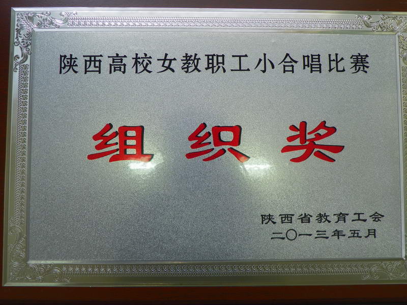 由陕西省教育工会组织的旨在活跃高校文化生活、增进了解、增强友谊的“唱响时代旋律,展现巾帼风采”小合唱比赛活动于5月9日-10日在西安举行。我院13名女教职工组队参赛,演唱了《我和我的祖国》、《外婆的澎湖湾》两首曲,比赛时她们正常发挥,取得了较好成绩,最终获得了优秀奖和组织奖。