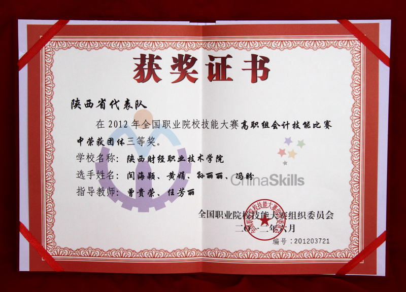 6月17日,2012年全国职业院校技能大赛高职组会计技能赛项在山西省举行,由我院信息工程系、会计系4名学生组成的陕西省代表队荣获本次比赛团体三等奖。