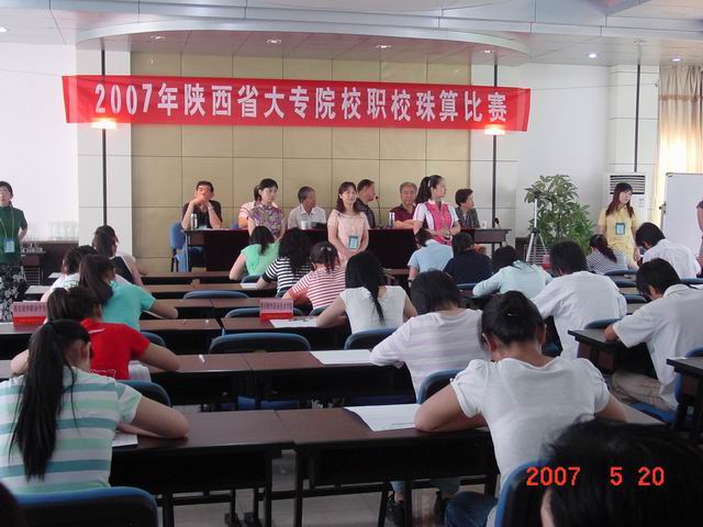 5月20日上午,陕财职院珠算代表队在邓迪夫和任晓华老师的带领下,参加了陕西省珠算协会组织的“2007年陕西省大专院校职校珠算”比赛,取得了骄人的成绩,教练员及所有选手全部获奖。