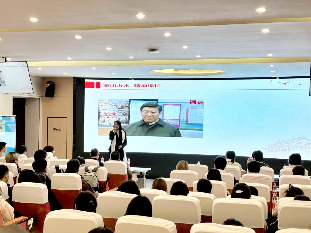 其中,我校红色问道之旅宣讲团主讲人齐雨洁从探起源——沂蒙精神如何发源、讲内涵——沂蒙精神的内涵是什么、续血脉——新时代如何传承沂蒙精神三个方面系统地进行了讲解,以习近平总书记关于沂蒙精神的深情论述为导引,以支前模范王克昌除夕带领群众为“钢八连”战士敬献第一碗饺子为结语,讲清了沂蒙精神的缘起、内涵和传承,使在场师生真切地感受到了战争年代先辈们顽强的革命意志,体悟到了军民之间的“水乳交融、生死与共”的鱼水之情。